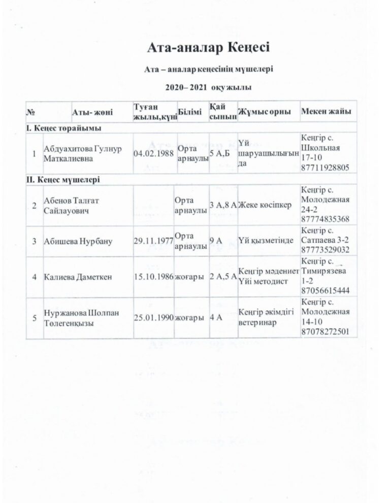 Ата-аналар кеңесін құру туралы
