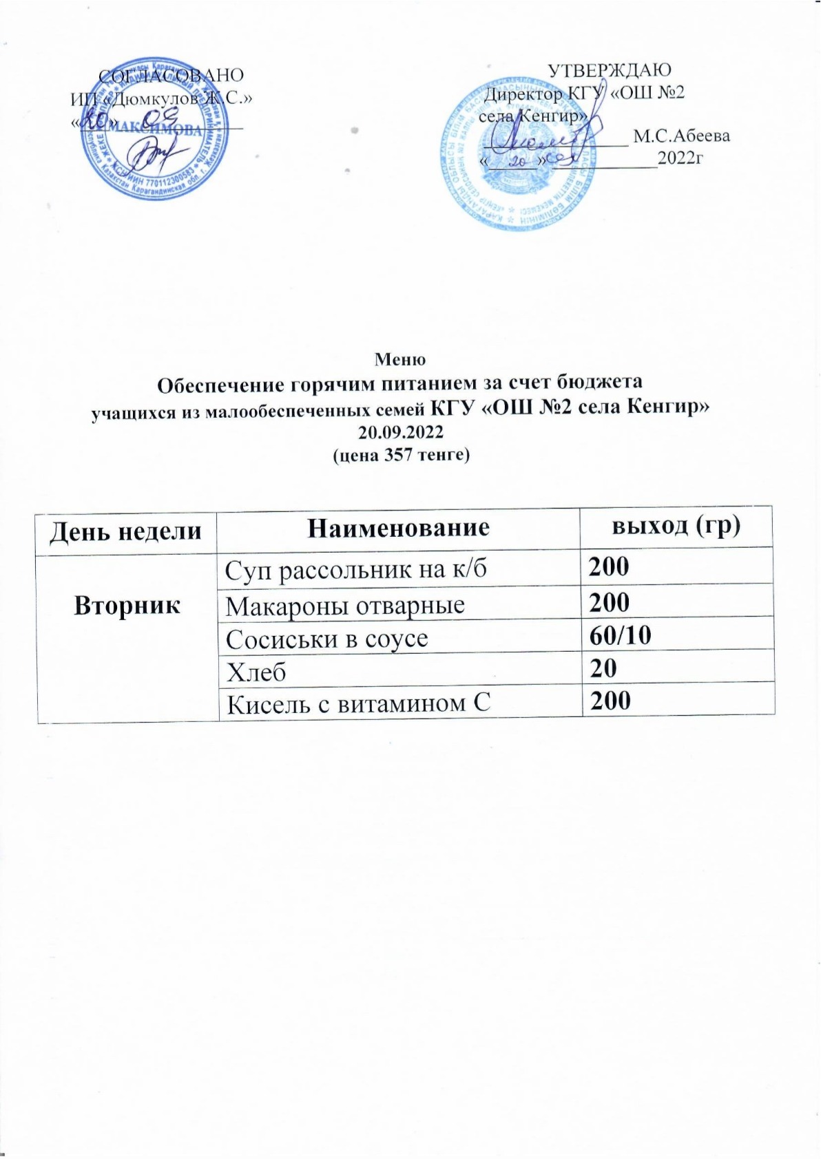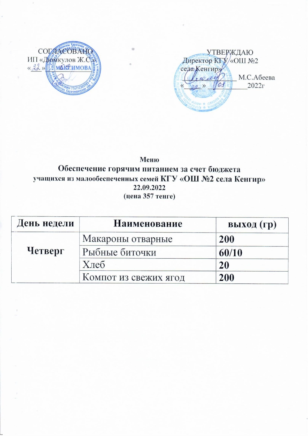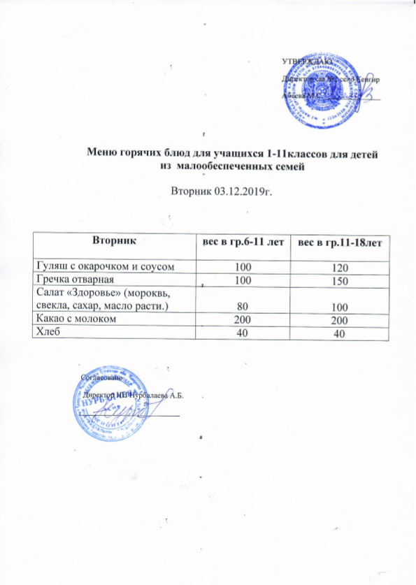 Дұрыс тамақтану денсаулық кепілі! Бүгінгі ас мәзірі: