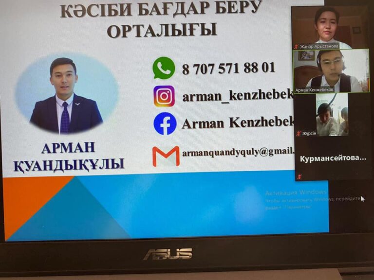 Кездесуіміздің кезекті қонағы Гуманитарлық ғылымдар магистрі, Ө.А.Байқоңыров атындағы Жезқазған университетінің «Рухани жаңғыру» орталығының жетекшісі, гуманитарлық-педагогтік институты директорының орынбасары Кенжебеков Арман Қуандықұлы болды. Өзінің өмірде қол жеткізген арман-мақсаттарымен оқушылармен бөлісе отырып, қызықты сұқбат өткізді. Арыстанова Жанар Серікқызының жүргізген бұл кездесуі мектеп бітіргелі отырған оқушылар үшін кәсіби бағдар берудегі маңызы зор. Арман Қуандықұлының дайындаған бейнесюжеттері оқушылардың болашақта қалаған мақсаттарына жетуге, сенімділікке, аянбай еңбек етуге шақырады. Оқушылар өздерінің көкейлерінде жүрген сұрақтарына жауап алды.