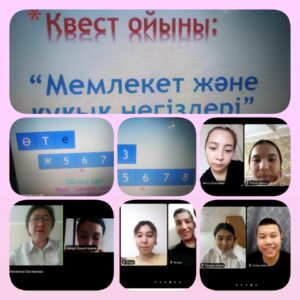 Қарағанды облысының білім басқармасы, Жезқазған қаласының білім бөлімінің, «Кеңгір селосының N2 ЖББМ» КММ -сінде «Құқықтық навигатор» апталығы аясында ақпанның 11-і күні «Мемлекет жəне құқық негіздері» тақырыбында 10-11 сыныптарының жетекшілері оқушылармен ZOOM платформасы арқылы квест ойынын өткізді.