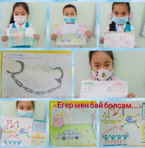 Қарағанды облысы білім беруді дамытудың оқу-әдістемелік орталығының ұйымдастыруымен Кеңгір селосының N2 жалпы білім беретін мектебінде «Қаржы əлемі» атты қаржылық сауаттылық апталығының жоспарына сәйкес «Олимпиадалар жəне байқаулар» тақырыбы аясында 2021 жылдың 23-ші ақпанында 2 сыныптар арасында «Егер мен бай болсам…» тақырыбында сурет салудан байқау өткізілді.