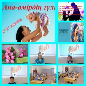 8 наурыз-Халықаралық Əйелдер күні қарсаңында жоспар бойынша «Ана-өмірдің шуағы», «Ана-өмірдің гүлі», «Ана деп көркем жыр төккен, Армысың, ару, нұр-көктем!», «Аналар ғой нəр беретін жүрекке. Дақ түсірмей көңіліне құрметте!», «Моя замечательная мама», «8 марта-день особый», «Мамин праздник приходить весной», «Мама первое слово» тақырыптарында ашық тəрбие сағаттары өткізілді. Барлық сынып сағаттары офлайн жəне онлайн форматтарында өтуде.