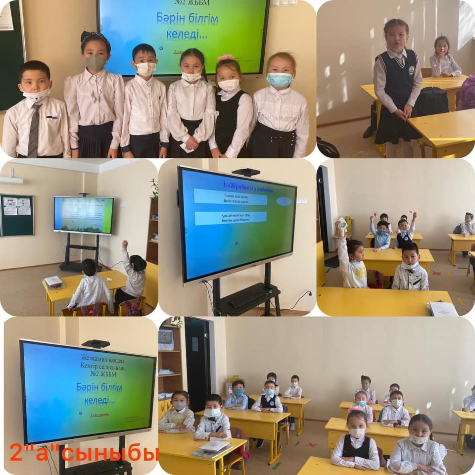 Қарағанды облысы білім басқармасының Жезқазған қаласы білім бөлімінің «Кеңгір селосының №2 ЖББМ» КММ-де 2 сынып оқушыларының қатысуымен «Бәрін білгім келеді!» зияткерлік ойыны өтті. Іс-шараның мақсаты: дүниетанымды дамыту, көркем, ғылыми-танымдық әдебиеттерді оқуға деген қызығушылықты ояту, эмоционалды көңіл-күй мен оқуға деген оң ынтаны сақтау.Оқушылар ойынға белсене қатысы. Ұшқыр ойы мен алғырлығын танытқан оқушылар жоғары ұпайға ие болды. #трехъязычие#наука#неделя#умц#