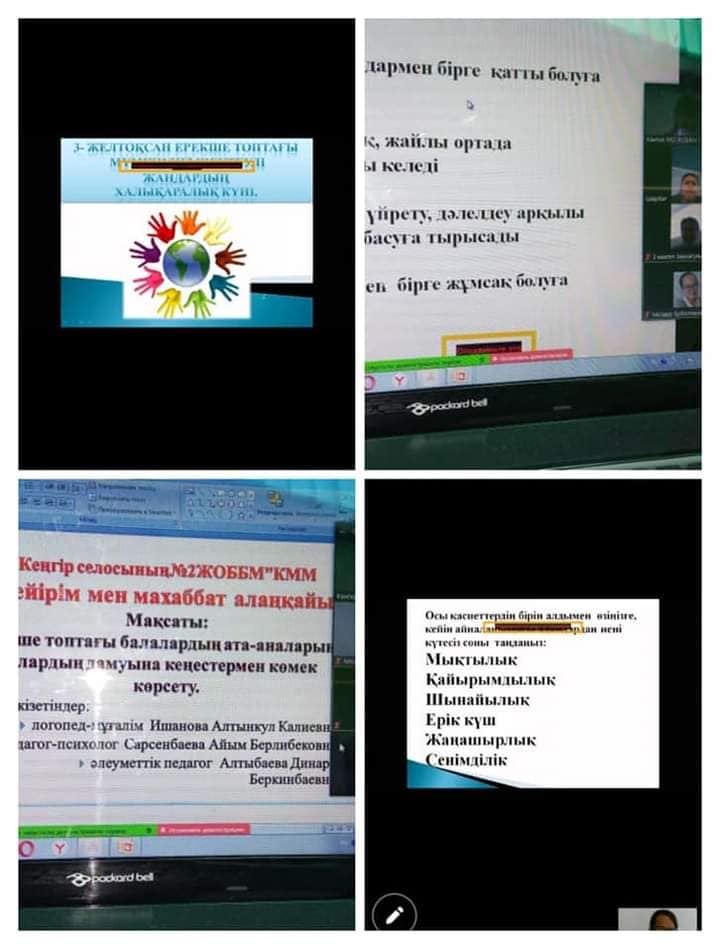 "Кеңгір селосының N2 ЖББМ" КММ-де " ерекше қажеттіліктері бар балалармен жұмыс істеу ережелеріне арналған "Мейірім мен махаббат алаңқайы" атты тақырыпта онлайн форматтағы жұмыс ұйымдастырылды.