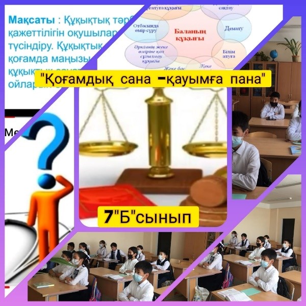 "Кеңгір селосының N2 ЖББМ"КММ-нің 5-7 сыныптары арасында 2022 жылдың 26-шы қаңтарында "Құқықтық сана-қауымға пана" жобасы аясында құқықбұзушылықтың алдын алу мақсатында сынып сағаттары өткізілді.