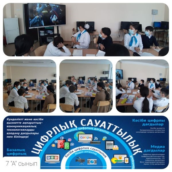 7 сыныптар арасында «Интернет пен әлеуметтік желілердің қауіп-қатері;әлеуметтік желілердегі мүмкін мәселелер» сынып сағаттарында оқушылар күнделікті өмірде интерентті дұрыс пайдалану туралы өзекті мәселелерді ортаға салып, әлеуметтік желілерді тиімді пайдаланып және пайдалану уақыты шектеулі болу керектігі айтылып талқылады.